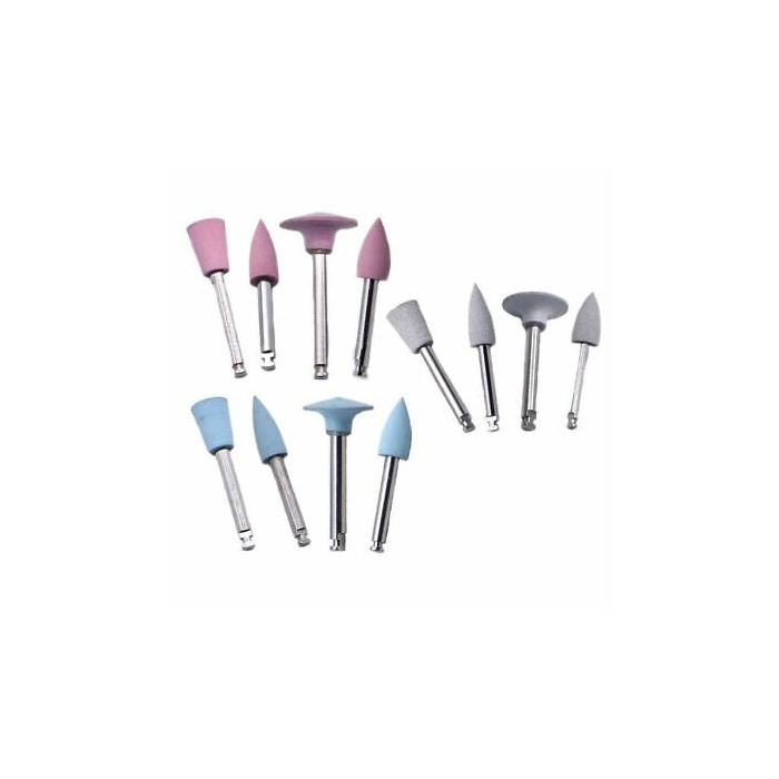 A composite polisher is a dental tool used to polish composite resin restorations, which are tooth-colored fillings. The polisher typically consists of a small, round head made of a soft, flexible material, such as rubber or silicone. The head is coated with an abrasive material, such as diamond particles or aluminum oxide, which helps to remove any rough or uneven areas on the surface of the composite restoration.