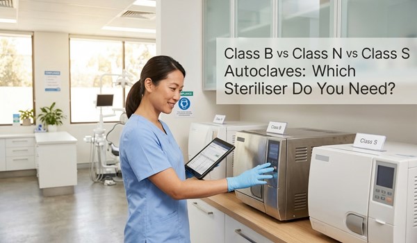 Which autoclave class do most Australian dental clinics use? Most Australian dental clinics use Class B because it covers every instrument type in a typical dental practice — pouched instruments, handpieces and hollow loads — under AS/NZS 4815. Class N is non-compliant for these load types. Class S requires load-by-load verification. For dental clinics, Class B is the practical baseline for compliance, not a premium upgrade.