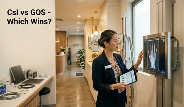 Choose CsI when your application requires the lowest achievable patient dose, high spatial resolution for orthopaedic or spinal imaging, or when daily imaging volume exceeds 15-20 exposures. GOS is acceptable for low-volume general radiography where the 20-25% cost saving over CsI is a genuine budget constraint.
