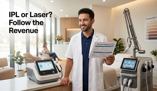 At 15 treatments/week, a laser generates $1,800-$4,500 more weekly revenue than an IPL and recovers its higher purchase price within 12-24 months. Below 8 treatments/week, IPL's faster payback and lower running costs make it the more profitable option.