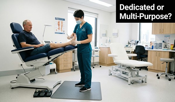 This comparison is for podiatry practice owners, multi-discipline clinic managers and allied health procurement teams deciding whether to invest in a purpose-built podiatry chair or specify a general treatment chair that serves multiple practitioners.