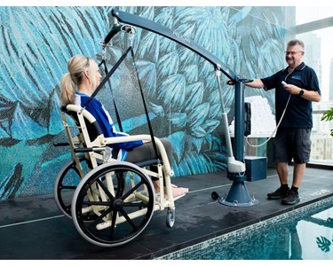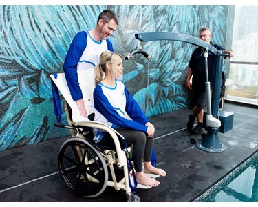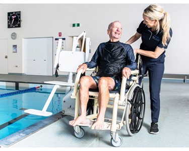 The Pelican Pool and Wet Area Wheelchair comes fitted with a lifting frame and straps making it suitable for use on our Pelican Pool and Spa Hoist. When used together with the hoist the aquatic wheelchair can be lifted in and out of the pool for ease of entry and exit.