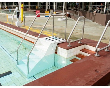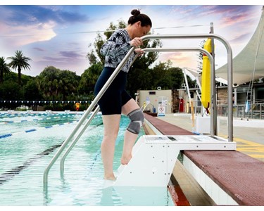 Swimmers of all types benefit from the innovative design of the Platypus Pool Steps – elderly, arthritic, young learners or anyone who is uncomfortable with or has difficulty using traditional vertical swimming pool ladders. The Platypus Pool Steps offer no deck modifications or alterations to install.